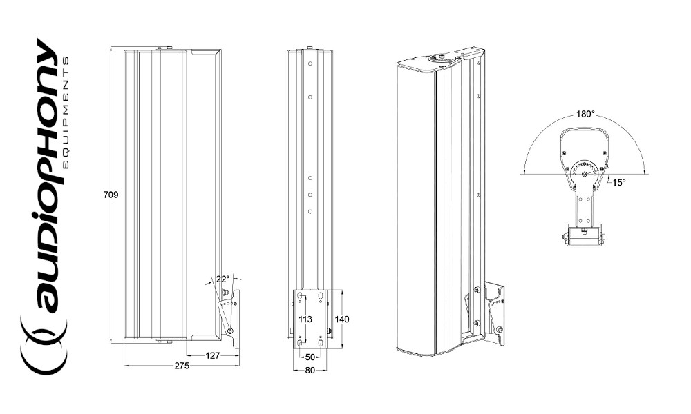 AUDIOPHONY iLINE83supw - Support adapté aux enceintes passives AUDIOPHONY iLINE83w. Support en acier blanc, plage de pivotement horizontal 180°, vertical 22°.