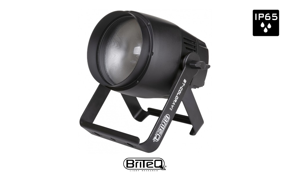 BRITEQ BT-COLORAY 120R -Projecteur/Stage beamer LED résistant aux intempéries avec LED RGBW COB 120W et angle de faisceau de 15°. Convient pour l'intérieur et l'extérieur IP65. Le projecteur produit un faisceau lumineux uniforme avec un excellent mélange de couleurs. Utilisation polyvalente pour le théâtre, la scène, les clubs, les parcs d'attractions, les manèges, la production vidéo/TV ou la location.