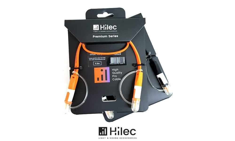 HILEC CFLAT-RCA - Cordon plat avec fiche RCA mâle vers fiche RCA mâle (1 x orange/1 x noir). Parfait pour le raccordement d'appareils, le câblage dans des racks ou pour le patch. Disponible en longueurs de 0,5m, 1m et 1,5m.