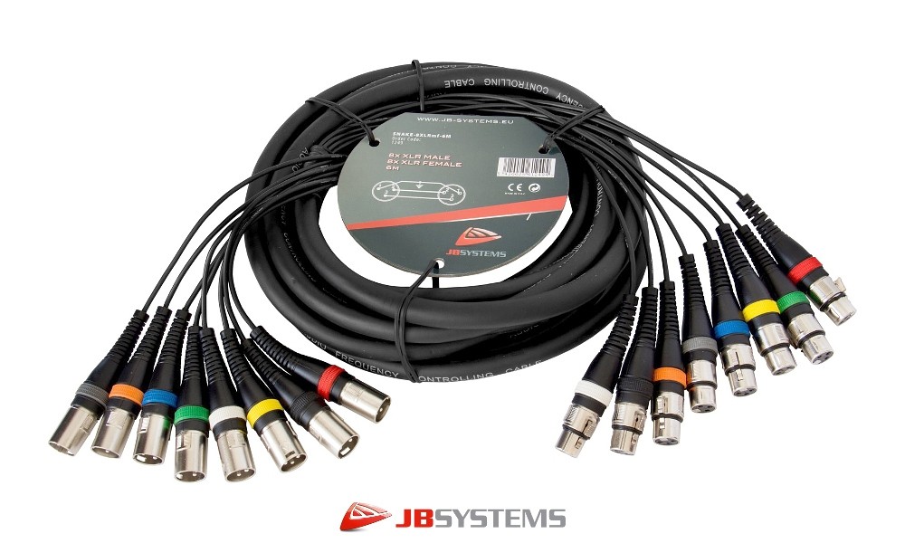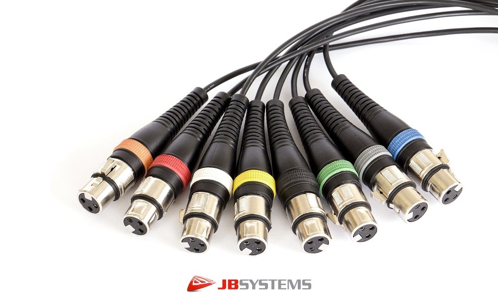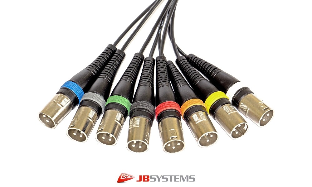 JB SYSTEMS SNAKE-Series - Multipaire avec 8 connecteurs XLRM/XLRF pour faciliter le câblage du home studio, de la table de mixage, des batteries, des racks, etc. Crée de l'espace et de la clarté grâce à des connecteurs à code couleur. Longueur 3m !