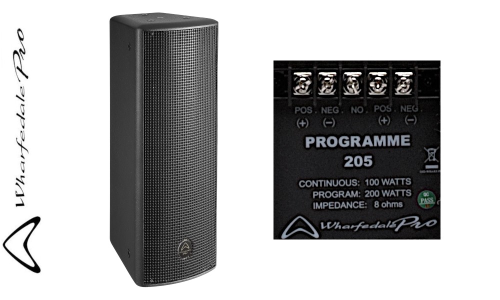 WHARFEDALE PRO PROGRAMME 205B noir - Enceinte passive à 2 voies équipé de 2 woofers de 5 pounces et d'un haut-parleur à compression HF en titane. Puissance 100W RMS, 200W musique, 400W peak, impédance 8Ω. Support de montage inclus.