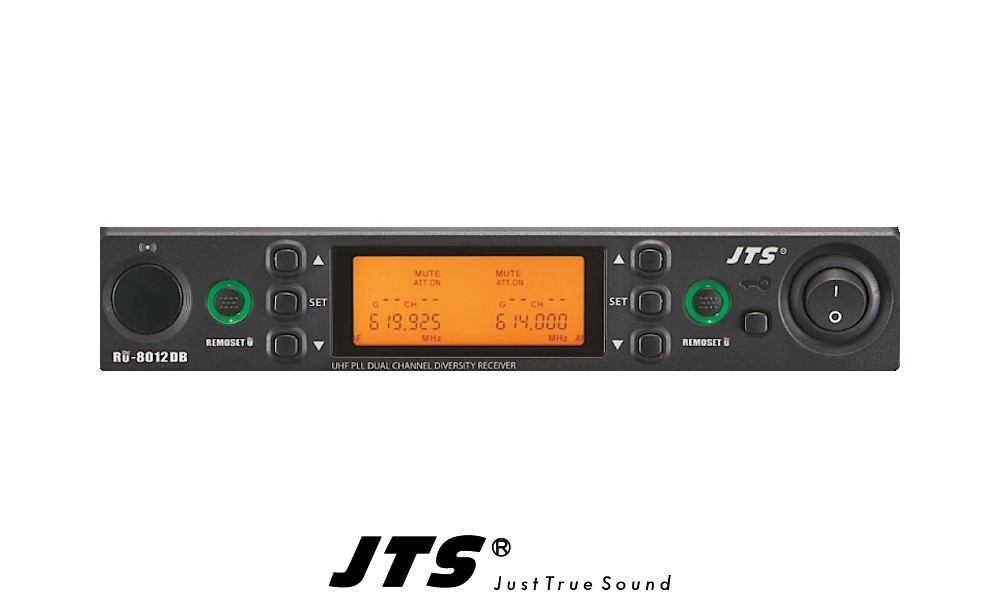 JTS RU-8012DB - Récepteur professionnel UHF true diversity à 2 canal avec technologie Remoset Ultrasonic. Grâce à la technologie REMOSET ULTRASONIC, vous synchronisez tous les réglages effectués sur le récepteur (fréquence, sensibilité, niveau, etc.) directement avec un microphone à main ou un émetteur de poche (option). Le récepteur avec contrôle synthétisé PLL True Diversity garantit une transmission fiable de l'émetteur au récepteur.
