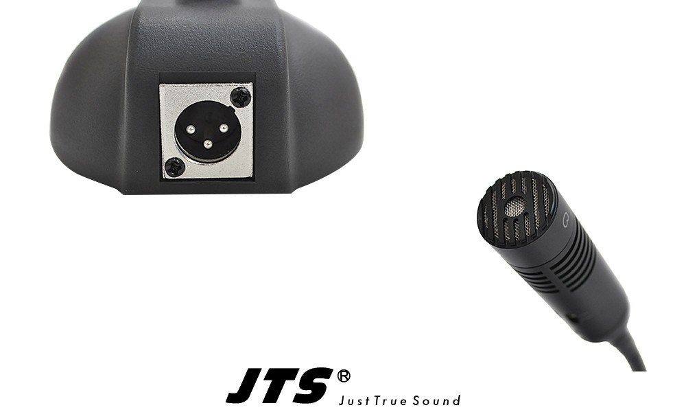 JTS ST-5000T - Microphone de table professionnel avec excellentes propriétés audio. Le microphone à condensateur possède une caratéristique cardioïde et est équipé d'un atténuateur de niveau 0dB/-10dB et d'un filtre HPF qui coupe les fréquences en dessous de 80Hz. Protégé contre les interférences RF. Socle en fonte solide avec commutateur marche/arrêt et fiche de connexion XLR/M à 3 broches. Nécessite une alimentation fantôme 36-52V DC. Bonnette en accessoire.