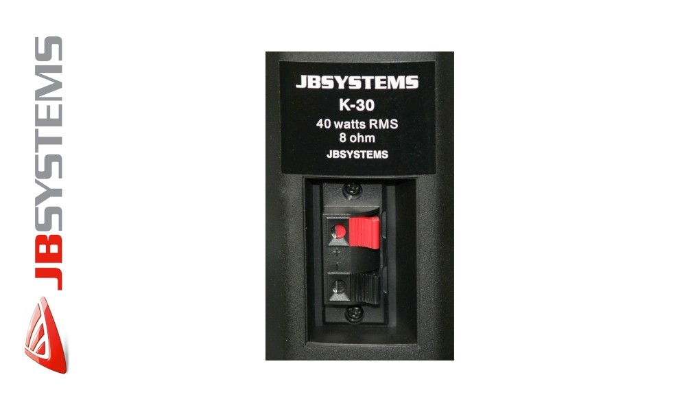 JB SYSTEMS K30 - Système d'enceintes à 2 voies 40W RMS/8Ω avec support mural inclus. Système d'enceintes polyvalent avec un très bon rendu audio. Parfait pour l'exterieur (IP43), club, bar, magasin, installation.