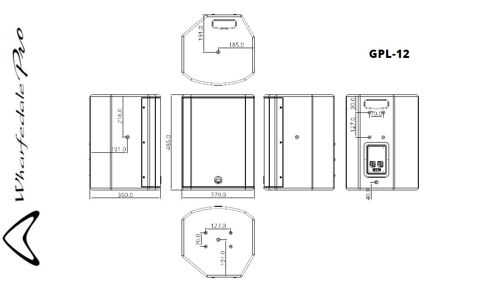 - 4 x filetages M8 pour support mural Wharfedale Pro WPB-1 en option